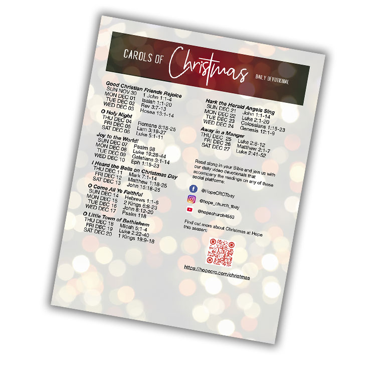 Join us for our third Advent Service of this season. We will be looking at Hebrews 1:1-6 and the Christmas Carol “O Come All Ye Faithful” as we worship and grow together. Also join for coffee afterwards and get connected to the community. Looking forward to meeting with you.